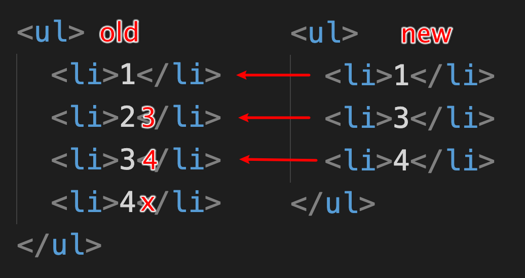 // 使用key属性进行元素比较